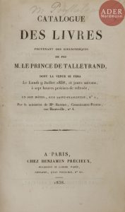 N° 160·[TALLEYRAND-PÉRIGORD (Charles-Maurice de)]. Catalogue des livres provenant des bibliothèques de …