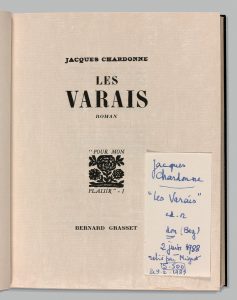 N° 133·CHARDONNE, Jacques. Les Varais. Paris, Bernard Grasset, 1929.