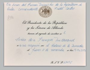 N° 6·[ALLENDE, Salvador]. Carton d’invitation adressé à François Mitterrand pour une réception …