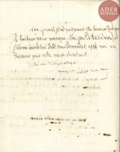 Expert : Monsieur Thierry BODIN, Les Autographes. Syndicat Français des Experts Professionnels en OEuvres d’Art. 45, rue de l’Abbé Grégoire – 75006 Paris. Tél. : + 33 (0) 1 45 48 25 31 – Fax : + 33 (0)1 45 48 92 67 – E-Mail : lesautographes@wanadoo.fr