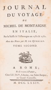 N° 108·MONTAIGNE (Michel de). - Journal du voyage en Italie, par la Suisse & l’Allemagne, en 1580 & …