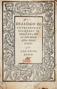 N° 994·ARETINO Pietro, Dialogo [...] nel quale si parla del gioco con moralità piacevole. (Al colophon:) …