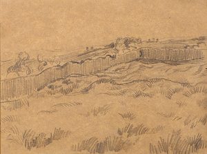 N° 184·VINCENT VAN GOGH (1853-1890). Champ de blé fermé par un mur - coin de la clôture derrière …