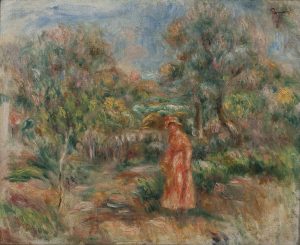 N° 187·PIERRE-AUGUSTE RENOIR (1841-1919). Femme en rose dans un paysage à Cagnes. Huile sur toile, …