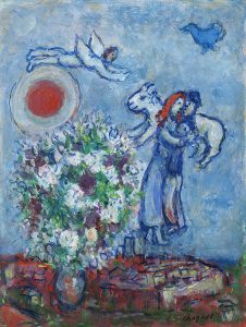 N° 229·MARC CHAGALL (1887-1985). Au-dessus de Saint-Paul, circa 1980. Huile sur contreplaqué, marquée …