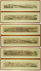 N° 16·GRAVURES ANGLAISES Suite de 6 gravures aquarellées à la main représentant des scènes de chasse …