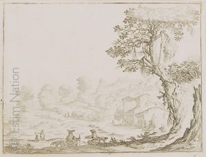 N° 5·Jacques CALLOT (1592-1635) d'après "Paysage animé" Eau-forte, planche de la série des paysages …