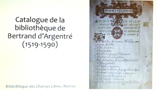 Bertrand d’Argentré en son demi-millénaire (1519-2019) Colloque Archives départementale d’Ille-et-Vilaine du 26, 27 et 28 septembre 2019. « Bertrand d’Argentré et ses livres », par Monsieur Malcolm Walsby (Université Rennes 2) Intervention du vendredi 27 septembre 2019. A écouter absolument.