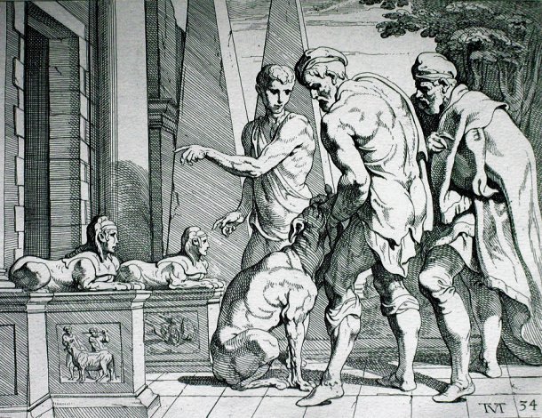 Theodoor VAN THULDEN (1606 - 1669). Peintre et graveur flamand, élève et collaborateur de Rubens dont le style l'influença profondément, il fut actif à Anvers, Paris, La Haye et Madrid, au service de Philippe IV. A Fontainebleau, il exécute des copies des fresques du Primatice et de Nicolo dell'Abate d'après l'Odyssée. Ces dessins servirent de modèles pour illustrer un ouvrage sur "Les Travaux d'Ulysse" et demeurent l'unique et précieux témoignage sur ces fresques exceptionnelles disparues en 1738 (Célèbre galerie d'Ulysse détruite en 1738-1739, dont les peintures nous ont été conservées par les gravures de Van Thulden). Le chantier de la Galerie dUlysse souvre dans les années 1540 et se poursuit au delà de la mort de son concepteur (Primatice), en 1570. PRIMATICE (Francesco Primaticcio, dit Bologne ou Boulogne) [1504-1570]. Peintre italien actif en France. Primatice part à 22 ans pour Mantoue, la cité de Federico II Gonzaga. Il y devient lassistant de Giulio Romano, lun des plus puissants héritiers de Raphaël.. Appelé en France en 1531 par François Ier, il y exécuta pendant 20 ans de nombreux travaux en peinture, en sculpture et en architecture. Comblé de bienfaits par le roi, il fut fait surintendant des bâtiments du roi, abbé commendataire de Saint-Martin de Troyes, prieur de Bretigny, etc., et mourut à Paris en 1570. Il fonda, avec son prédécesseur le Rosso, l'école dite de Fontainebleau, qui a exercé une grande influence sur l'art français antérieur à Poussin. |