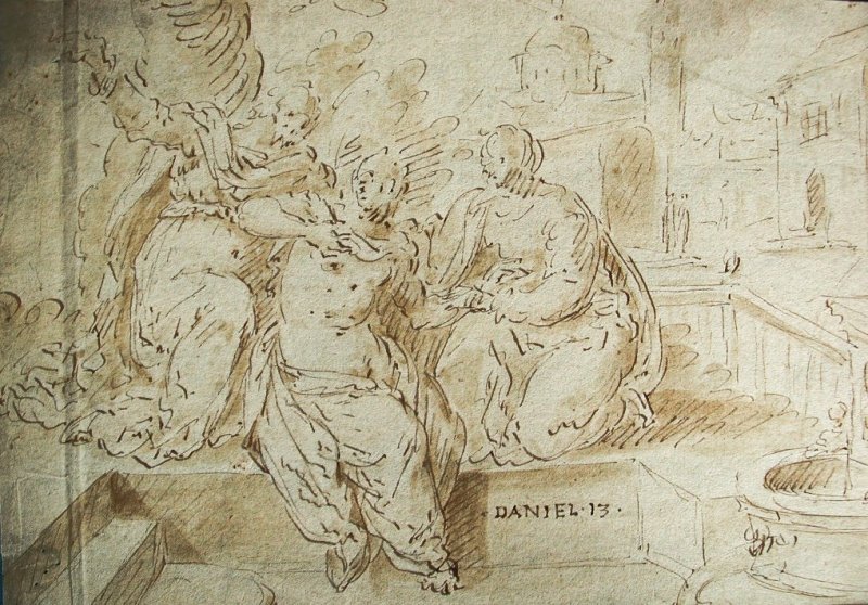 MONDO, Domenico (1723-1806). Elève de Fr. Solimena. Il a été de 1789 à 1805, directeur de l'Académie de peinture de Naple. Il décora de peintures et de fresques plusieurs églises de Naple ainsi que le château de Caserta. C'est dans les années 1770, qu'il est au sommet de son art, elle se caractérise par l'emploi de plus en plus de lavis brun, gris ou noir qui corrodent les lignes de contour des figures, leur donnent un air de flottaison. Mondo est certainement le dessinateur le plus prolifique de la seconde moitié du XVIII à Naple. Plus de 150 dessins de nos jours lui sont attribués. Ref : BENEZIT |