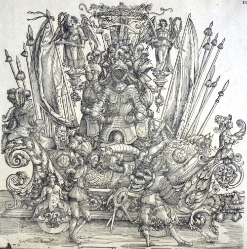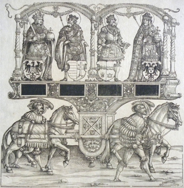 Triomphe à la gloire impériale (planches, gravée en 1515-1519) Fait partie du recueil `Généalogie de l'empereur Maximilien I`, suite de 77 estampes |
