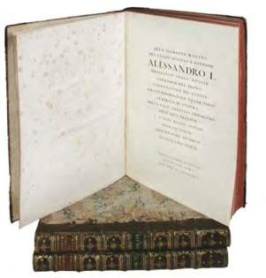 Zar Alessandro I, sostituite alle 4 comunemente contenenti la dedica a stampa); VIII, 168 con 79 carte di tavole; IV, 140