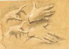 Matita nera, biacca; carta marroncina a vergelle preparata
