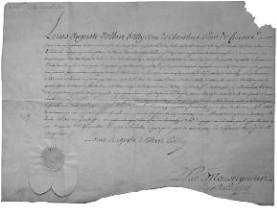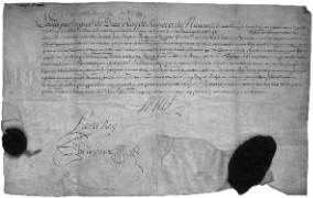 avec grand sceau de cire (manque la moitié). Signé Louis (secrétaire ?),