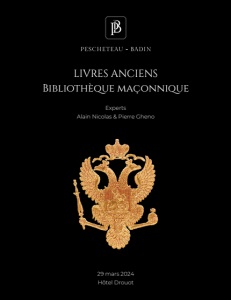 29 mars 2024 Hôtel Drouot LIVRES ANCIENS Bibliothèque maçonnique Experts Alain Nicolas & Pierre Gheno