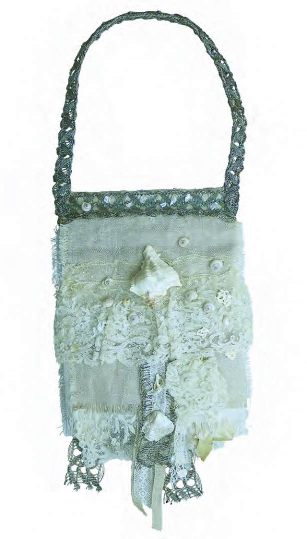 Création 2010 : “Livre-sac”, Toiles de lin, Rubans, Dentelles, Coquillages.