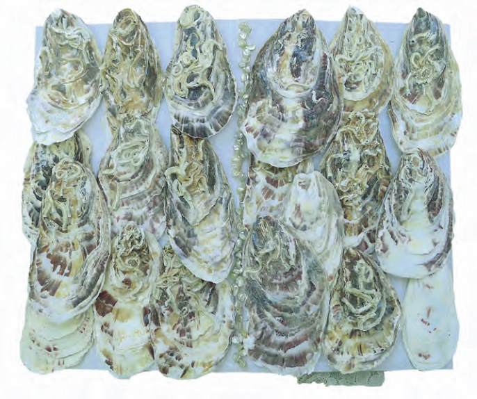 Création 2011 : Papier Japon, Huîtres, Perles baroques, Dentelles.