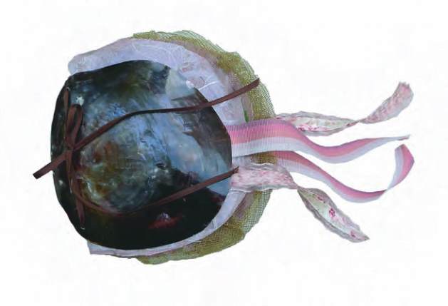 Création 2007 : “Livre‑Coquillage”, Tulle, Soie, Rubans, Coquillages, Papier de soie, de Japon.
