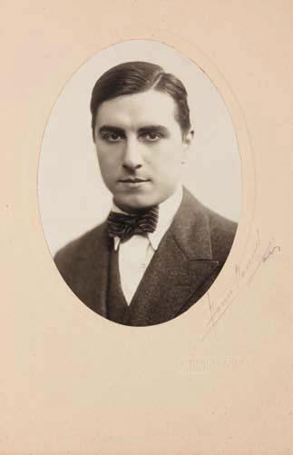 Magnifique portrait mi-buste de face. Photographie originale, en médaillon, par Henri Manuel (cachet à sec), signée par lui au crayon sur le support. Note de J. G. au dos : « 1928 – photo Manuel ».