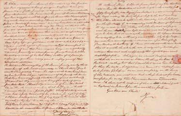 Lettre autographe signée de Josiah Green, 3 pages pleines in-4 ; Liverpool, Grande-Bretagne, 29 mai 1836. Adresse et marques postales (« New York – Ship – Jul. 6 ») sur la IV e page. Papier légèrement bruni et plis fendus par endroits, à restaurer.