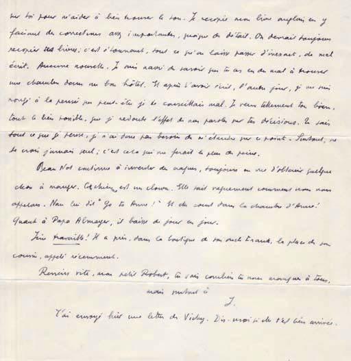 Julien Green à Robert de Saint Jean : Environ 50 lettres, ca 80 pages in-8 ou in-4 (une in-12), datées des années 1937 (Paris) et 1942 (Etats-Unis). Un télégramme joint.