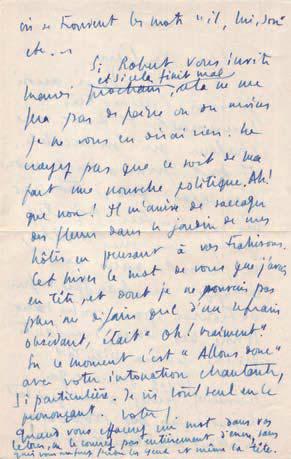 La dernière lettre de Gouhier à Green date de la fin de l’année 1991. Le vieil homme de 93 ans, immobilisé à la suite d’un accident, trouve néanmoins la force de complimenter son correspondant, de deux ans son cadet, pour « … l’art avec lequel vous pouvez écrire un conte à la manière de Voltaire et des romans à la manière de Balzac. Ces deux ‘ à la manière de’ n’ étant que des analogies tout à fait imparfaites. Vous voyagez dans la ‘quatrième dimension’ avec la même aisance que les champs de bataille… Croyez que je ne vous oublie pas… », etc. Documentation inédite.