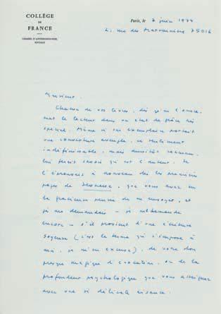 LEVI-STRAUSS Claude (1908-2009) Anthropologue et ethnologue français Professeur au Collège de France et membre de l’Académie française. 19 lettres ou cartes autographes signées, environ 30 pages de formats divers ; Paris, Montigny-sur-Aube, années 1973 à 1992. En-têtes. Quelques enveloppes.