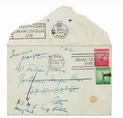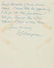 MAUGHAM Somerset (1874-1965) Dramaturge et romancier britannique Lettre autographe signée, 1½ pages in-8 ; [New York, 21 septembre 1942]. Enveloppe.