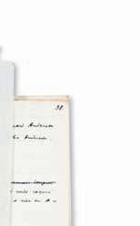 1) La première version du tapuscrit signé et corrigé par Julien Green, dont de nombreux passages furent biffés mais restent parfaitement lisibles. Ce tapuscrit est accompagné d’une dizaine de pages autographes écrites à Genève le 12 mai 1954, ébauches du début du premier acte et quelques lignes relatives aux second et troisième. Sur une feuille in-4 jointe, intitulée « Distribution par ordre d’entrée en scène », nous trouvons les noms des acteurs choisis et les rôles qui leurs seront attribués. Le tout est conservé dans une chemise de toile rouge avec pièce de titre de veau rouge sur le dos (« Julien Green – L’Ombre »), avec étui assorti.