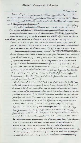 joint un ensemble d’environ 40 pages de notes en partie autographes (dont une dizaine tapuscrites avec corrections), herches historiques et biographiques ayant servi à la rédaction de Frère François , qui parut aux Editions du Seuil en 1983.