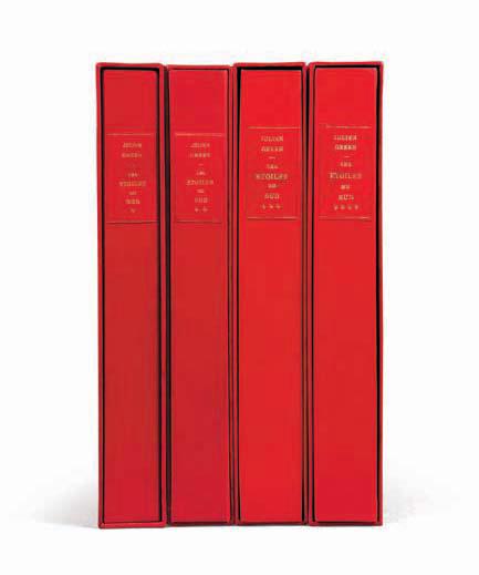 Manuscrit autographe complet, 960 pages in-4 auxquelles s’ajoutent plus de 100 pages de formats divers. Feuilles libres réunies dans quatre chemises cartonnées recouvertes de veau rouge. Pièce de titre en cuir rouge (« Julien Green – Les Etoiles du Sud »). Etuis assorti. Dossier joint.