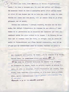 Textes français et anglais (traduction de l’auteur), reprenant des écrits de Julien Green datant des années vingt, avec préface et notes de Giovanni Lucera. Nombreux passages censurés (recouverts d’un fluide correcteur blanc genre typex), corrections et ajouts de la main d’Eric Green (sans doute supervisés par le vieil écrivain), dont 3 pages autographes de notes et textes divers.
