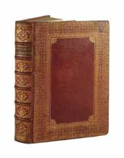 à double traverse, motif doré en écoinçon, dos à nerfs orné, roulette dorée intérieure, tranches dorées (