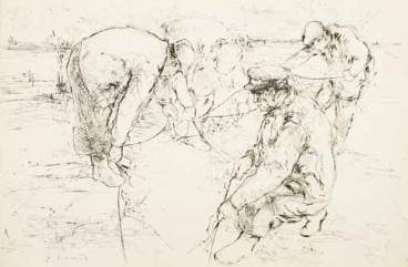 Le grand dessin a été encadré. Il s’agit d’une encre de chine représentant une étude d’homme portant un fusil (64 x 50 cm),