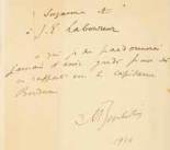 LABOUREUR. Joint un menu du restaurant Boulestin pour le Jeudi 26 mai 1932 sur papier jaune cartonné format carte postale.