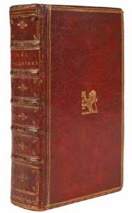 froid en encadrement sur les plats, dos à nerfs, doublures de maroquin rouge avec armes dorées au centre et encadrement