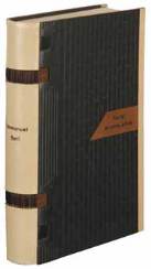 — In-8, (1 f. bl.), 231 pp., (3 ff. dern. bl.), couverture imprimée. Demi-box beige à