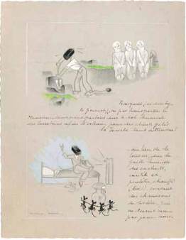 d’un bateau à aube bondé de personnages munis de bâtons de promenade, l’artiste commente : « Voici l’image