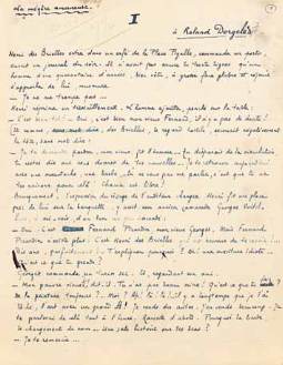 Le manuscrit a servi pour l’impression. À l’encre bleue sur papier ligné, il présente de rares ratures et corrections. Il est dédié