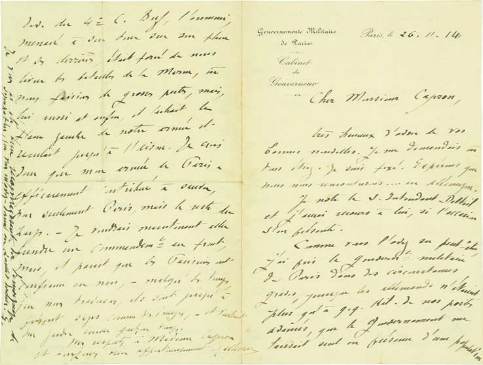 « Je vous remercie cordialement de votre gracieux envoi. Il me console de n’avoir pu faire comme je l’espérais le voyage