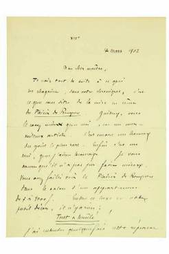 . L.A.S., 17 mars 1902, [à Gustave Larroumet] ; 3 pages in-8 à son adresse