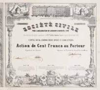 Action de 100 francs au porteur, aux armes de la ville de Lyon,