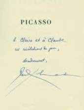 Picasso imprimé en rouge, enrichi d’un envoi autographe de Paul éluard