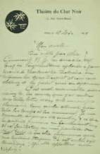 Dans la seconde lettre datée du 31 août 1885, Salis demande à un directeur de théâtre “de tenir à la disposition du Chat Noir…