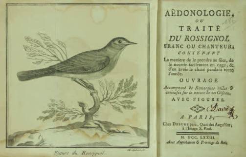 Seconde édition de ce traité du rossignol composé par le médecin et naturaliste Louis-Daniel Arnault de Nobleville (1701-