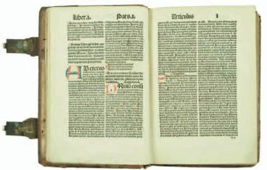 Exemplaire entièrement rubriqué en rouge et bleu, dans sa première reliure. Les coiffes ont été restaurées ainsi que les liens