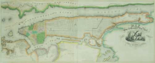 et de Newtown, ainsi que l’Hudson river et l’East river. Elle représente la ville alors qu’elle commençait son expansion, avec