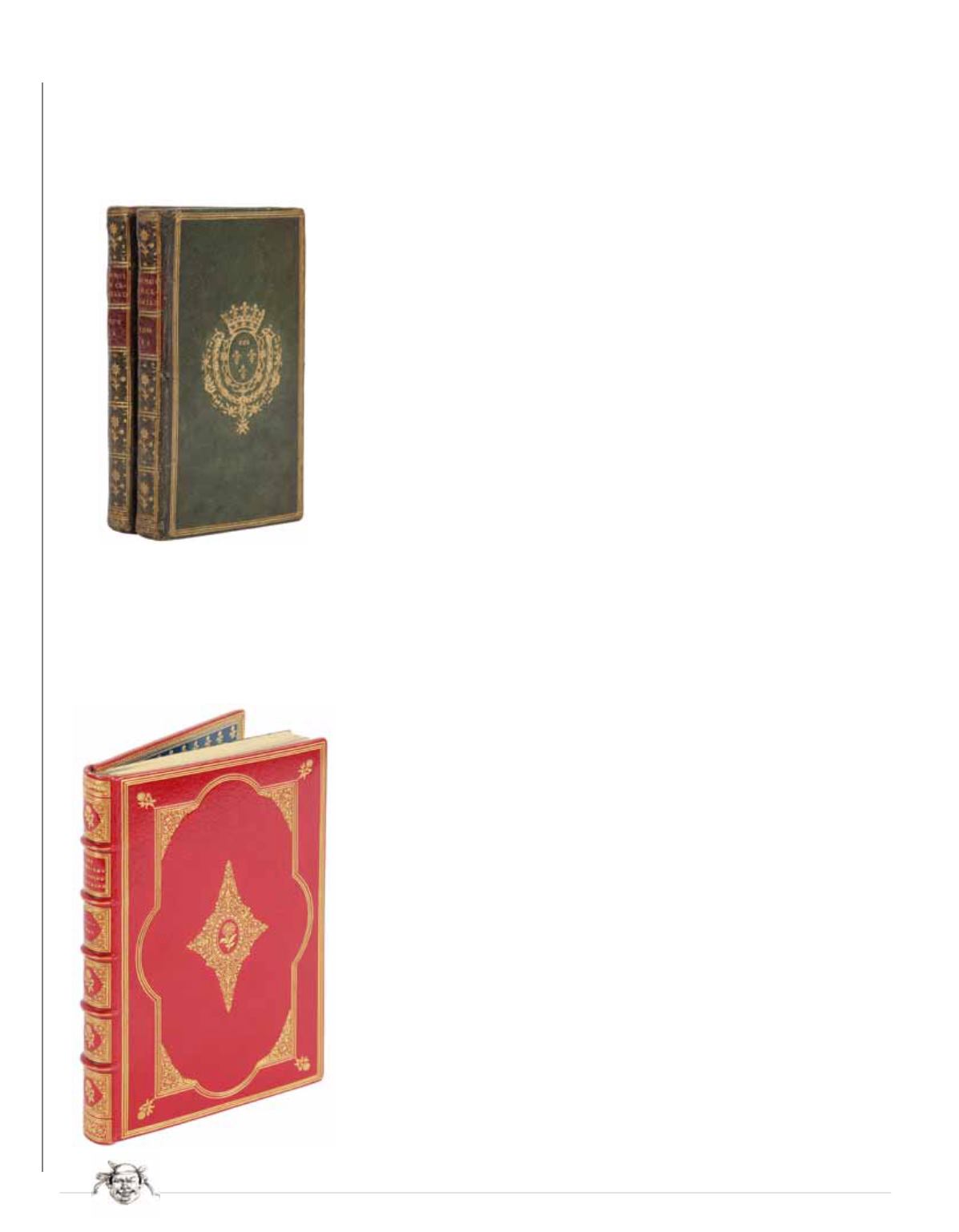 rouge à l’intérieur, orné d’une roulette dorée, doublures de maroquin bleu bordées de trois filets dorés et d’une roulette