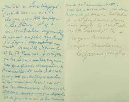 tous les cas, il pense bientôt quitter Aix : « J’en aurai bientôt assez d’être au vert dans le pays de Monsieur Cézanne. Bien sûr je