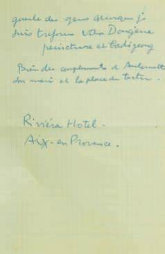 fait voir à Zezette [sa voiture] la Corniche d’or. De St Raphaël à Cannes c’est vraiment très beau une route qui tourne qui tourne